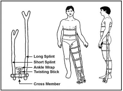 * Vous pouvez voir un bon exemple d’attelle de traction improvisée ci dessous.