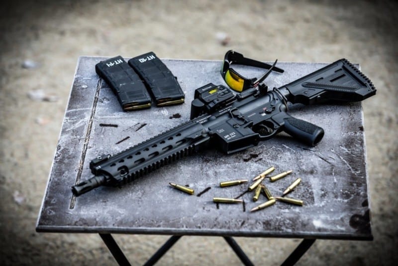 Il existe de nombreuses bonnes options ici. Un exemple, sans surprise, serait un AR-15. Avec un chargeur de 20 à 30 coups, c’est une excellente option pour vous défendre contre plusieurs attaquants. Moi je préfère le HK MR223 !!