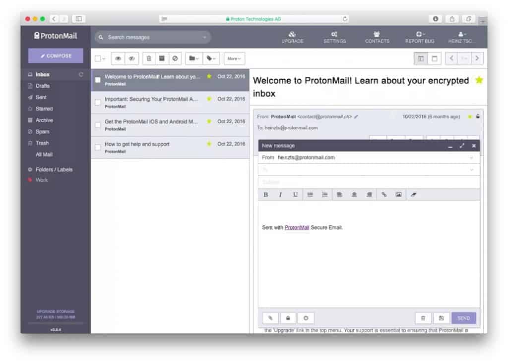 Contrairement à d’autres services de messagerie, il crypte également automatiquement tous les messages entrants et sortants, quel que soit le service de messagerie utilisé par le destinataire – une fonctionnalité intéressante si vous écrivez à quelqu’un en dehors de votre réseau connu. Cependant, la société a son siège en Allemagne, ce qui peut ou non lever quelques drapeaux rouges.