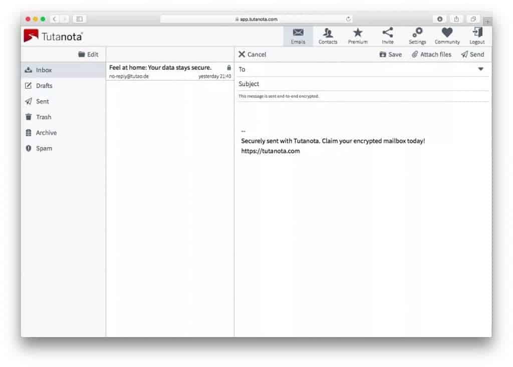 Un autre excellent service de messagerie open source, Tutanota utilise un cryptage de bout en bout pour sécuriser votre correspondance.