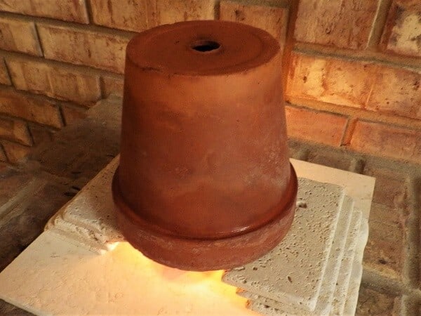 Il existe des alternatives de sauvegarde aux pots de fleurs. Le meilleur est peut-être un four hollandais en fonte inversé sur les carreaux ou les briques à la place des pots de fleurs. Vous n’aurez pas la convection que crée un pot de fleurs dans un pot de fleurs, mais la fonte va certainement chauffer.