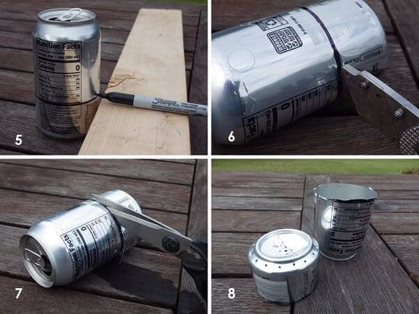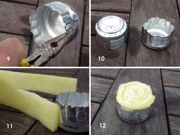 - Une fois que vous avez coupé le fond des deux canettes et que le dessus a été perforé, vous êtes prêt pour la mèche isolante.