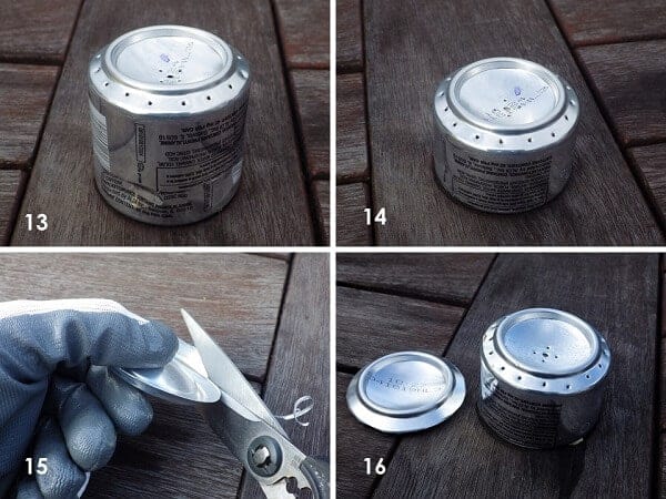 Faites des folies et dépensez trois dollars pour obtenir une nouvelle canette propre. Une canette de 1 litre brûlera un peu plus d’une heure jusqu’à ce qu’elle doive être remplie à nouveau. Ne remplissez pas le bidon tant qu’il n’est pas complètement refroidi.