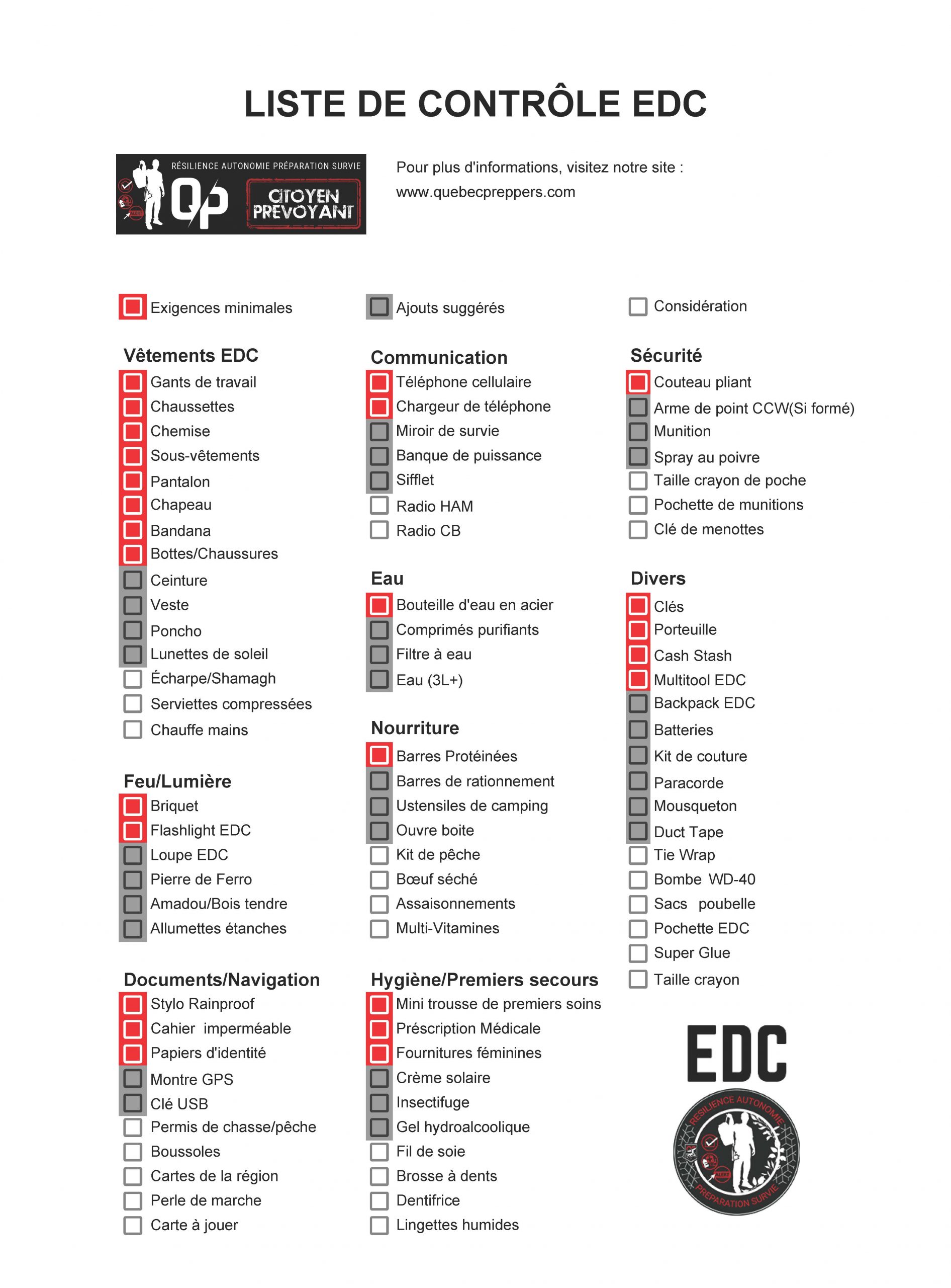 Liste De Controle EDC PDFv2 Par Le citoyen prévoyant - Expert en préparation aux situations d’urgence et résilience citoyenne Dernière mise à jour : 3 mars 2024 Partager