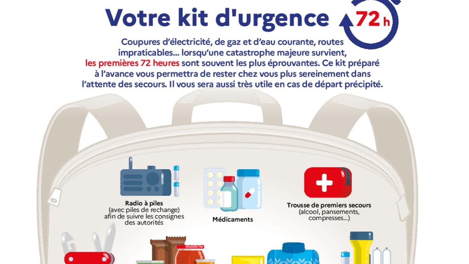 - Se protéger : recommandations pour assurer sa propre sécurité et celle de ses proches, liste des éléments essentiels à avoir chez soi (eau, nourriture, pharmacie de base, lampe torche, piles).