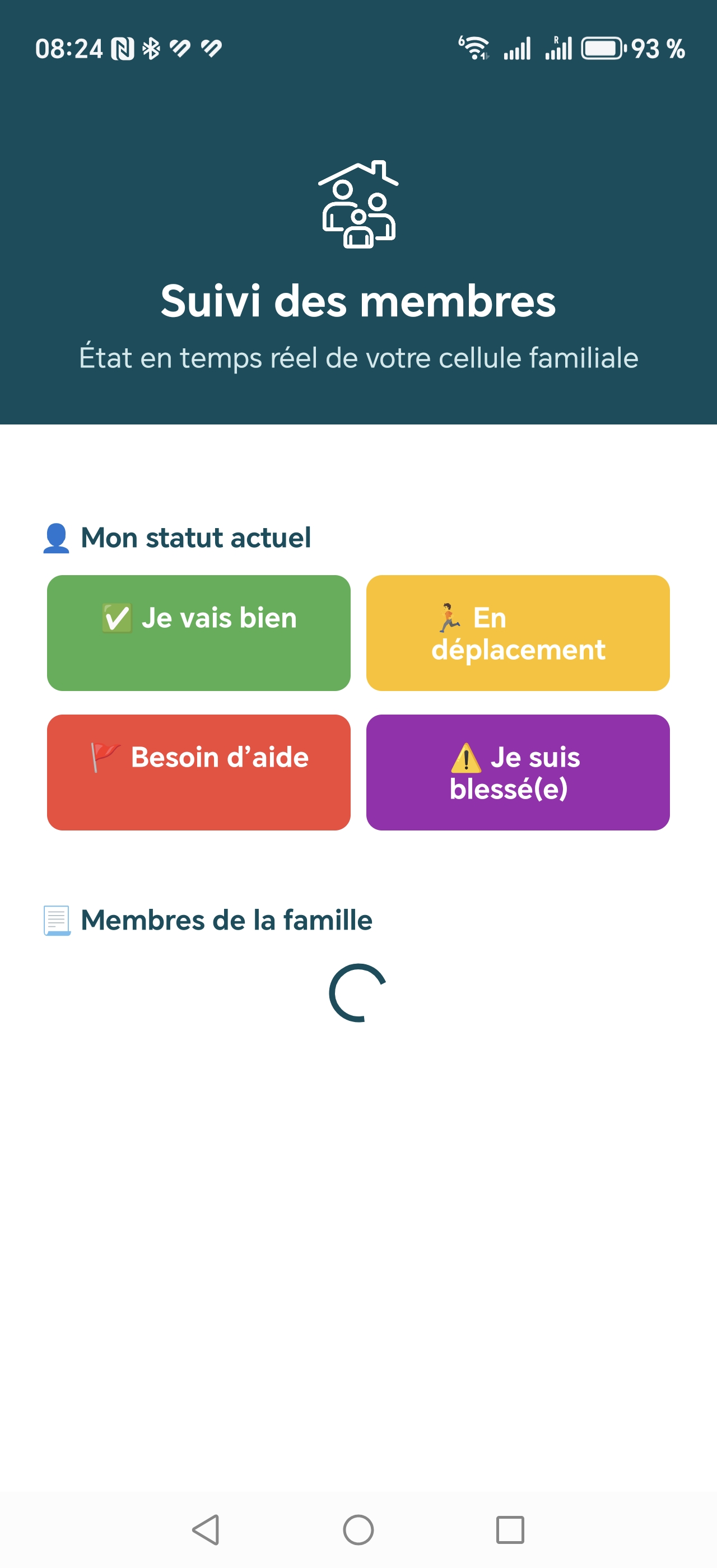 Quand tout s’effondre, la priorité devient la famille. PrépaCivile intègre un système de suivi des membres en temps réel :