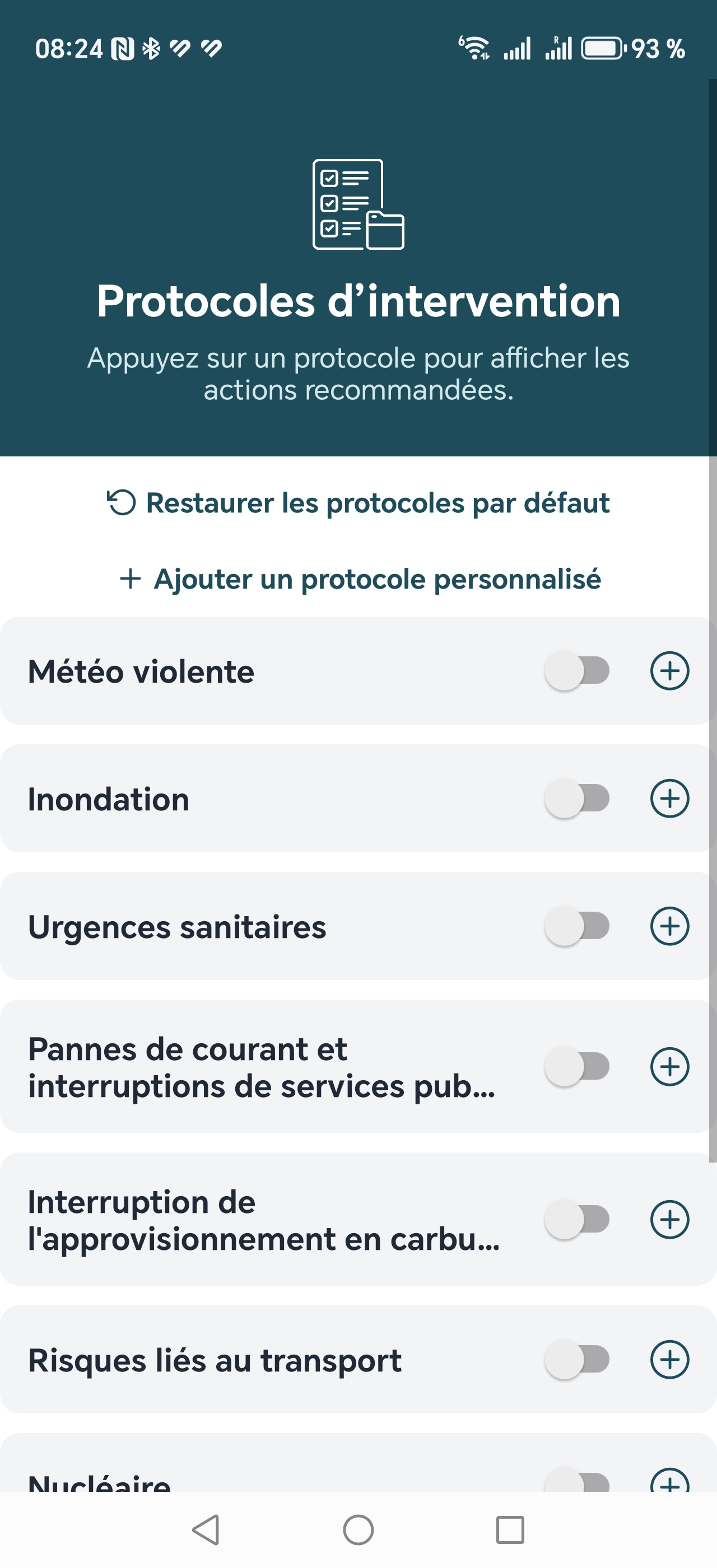 Des checklists d’actions spécifiques pour chaque situation : inondation, incendie, urgence médicale, tempête, etc.
