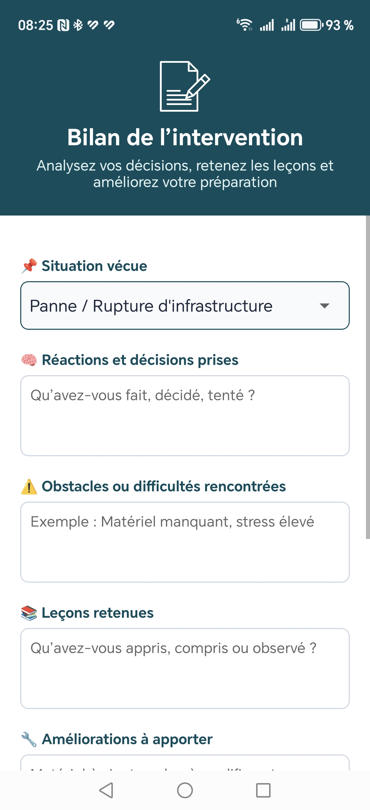 Chaque écran est conçu pour être utilisable même hors ligne. Pas besoin d’attendre les secours : vous saurez quoi faire dès les premières secondes.