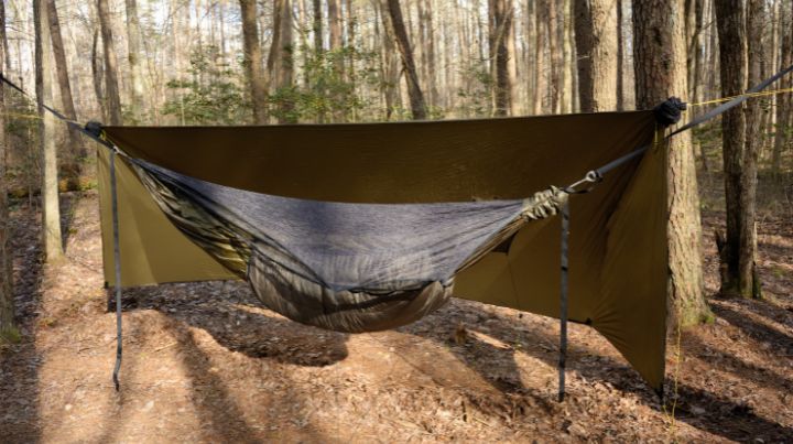 Les options les plus légères et les plus compactes sont les kits hamac + bâche et les tentes bivouacs pour une personne (1P), comme le Snugpack Ionosphere, le Stratosphere ou similaire. Les bivouacs sont discrets, donc parfaits pour rester cachés de la vue et protégés des intempéries et des insectes. Les hamacs et les bâches nécessitent des arbres. Si vous vivez dans des endroits où l’hiver est rigoureux, renseignez-vous auprès des groupes de camping locaux pour connaître le meilleur équipement et les pratiques les plus sûres.