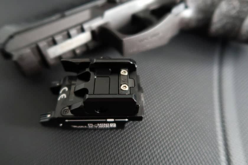 La Valkyrie mini 2 est équipé d’une entretoise GLOCK. Il comprend également une entretoise légèrement plus large de 1913, ainsi que deux vis et un outil pour l’installation. Comme vous pouvez le voir le tout se monte parfaitement sur mon H&K SFP9 et le tout en quelques secondes !