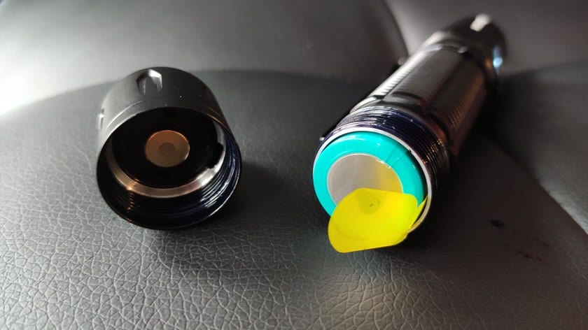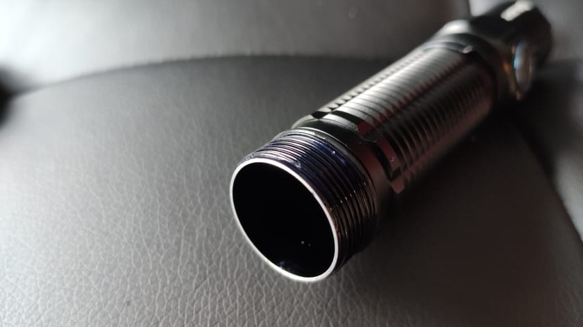 Lunette de frappe : La lunette de frappe dentelée n’a pas encore été utilisée, mais je peux imaginer que la taille compacte et la nature facile à saisir de cette lampe de poche rendraient cette fonctionnalité très pratique si vous en aviez besoin face a un assaillant par exemple.