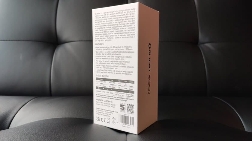 Lumens : Alors, quelle est la luminosité du Warrior 3 ? Cette lampe de poche a une luminosité maximale de 2300 lumens. Elle dispose également de modes de gradation à 800 lumens, 200 lumens et 15 lumens et 1 lumen pour le mode ”moon”.